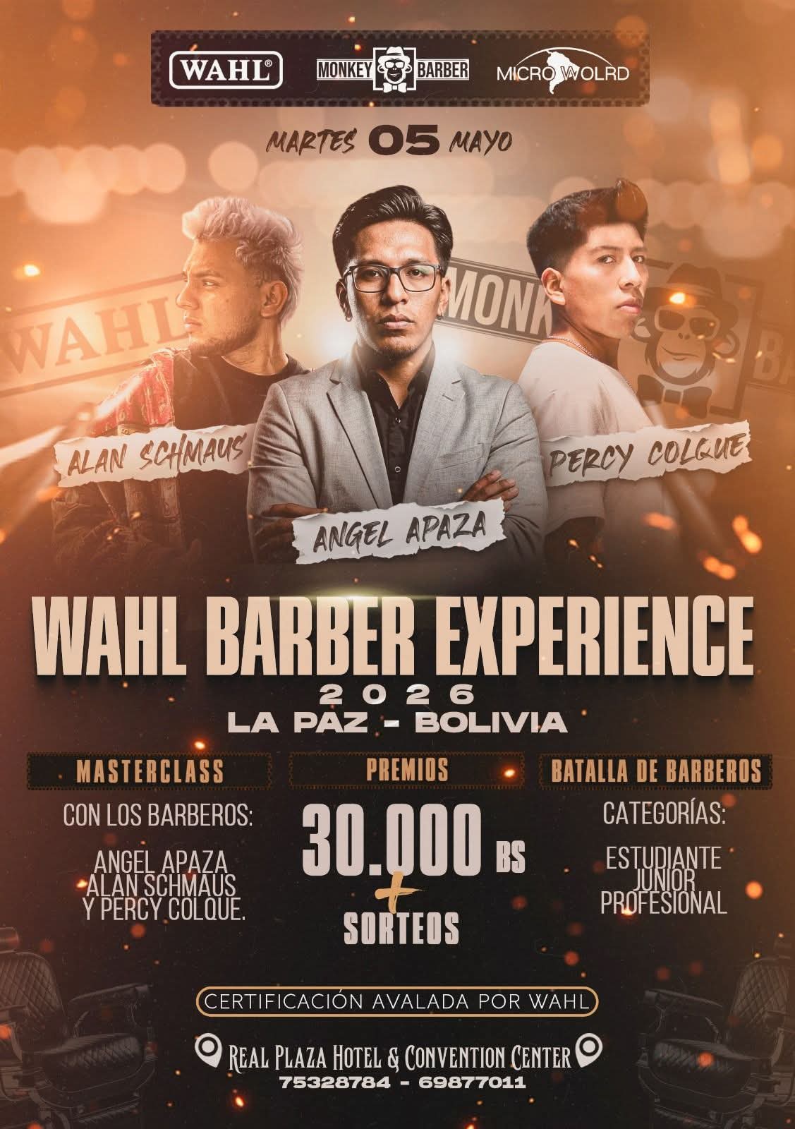💈🔥 ATENCIÓN BARBEROS BOLIVIA 🔥💈 Llega la BATALLA OFICIAL del WAHL BARBER EXPERIENCE 2026 🚀 Prepárate para vivir una experiencia única donde los mejores barberos demostrarán su talento en vivo 🔥✂️ 🔥 Competencias en vivo 🔥 Categorías: Estudiante, Junior y Profesional 🔥 Premios en efectivo + máquinas WAHL 🔥 Ambiente profesional 📍 LUGAR : Real Plaza Hotel & Convention Center ,Av. Arce Nro. 2177, La Paz, 📅 FECHA : 5 de Mayo 2026 ⏰ HORARIO : 9:00 AM – 6:00 PM 💣 *SI ERES BARBERO… ESTE EVENTO ES PARA TI* 💣 *SI TE GUSTA EL ESTILO… NO TE LO PUEDES PERDER* 📲 *RESERVA TU CUPO / INSCRÍBETE YA WhatsApp: +591 76663150 / 75517872 🔥 *ORGANIZA: MICROWORLD BOLIVIA* 🔥